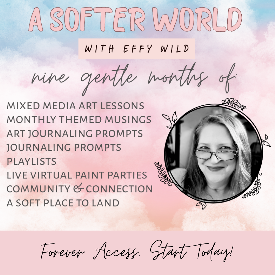 A Softer World is a nine-month journey for mixed media misfits, rebels, and tender-hearted creatives who are ready to swap perfection for presence, dogma for devotion, and hustle for the holy pause.