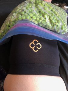 I'm typing to you from the nest, flanked on either side by the doggos. My knee is elevated up on a pillow. It's encased in a brace, and I'm icing it *again*.