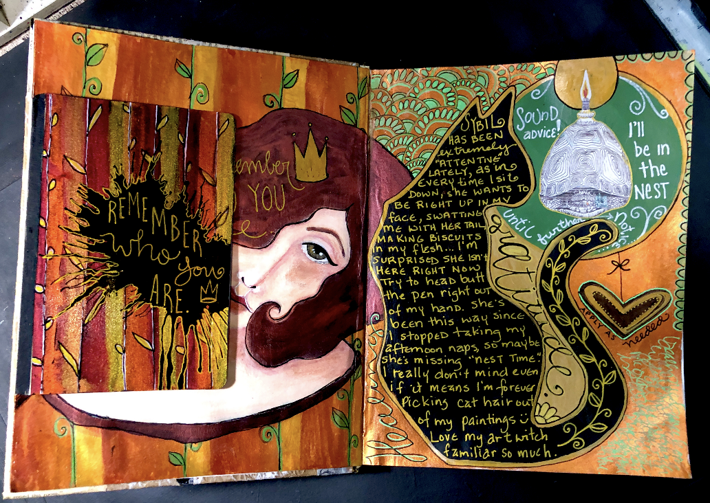 Once you're all signed up and we've done our orientation gathering and our sketchbook preparation, your first lesson will magically appear in the classroom on April 8th by 3 p.m. EDT and will include a "main" and an "mds". The "main" is the spread we start each week with and is usually done on the left hand facing page of a full 2 page spread. The "mds" or "multi-day spread" is usually done on the right hand facing page and includes 4 - 7 days worth of visual journaling. MORE ON THIS DURING OUR FIRST LIVE CALL!
