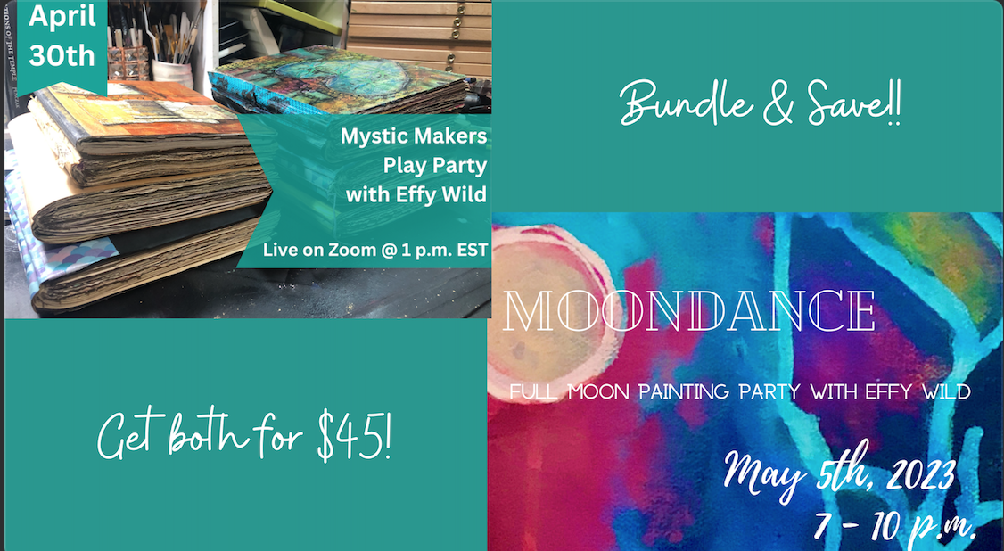 Join me for a Full Moon Painting Party, live on Zoom on May 5th, 2023 from 7 - 10 p.m. EASTERN (note that we often stay longer for an after-party). Bring a beverage, and a candle, and be prepared to spend some time engaging with the energies that are present at this time as we splash some paint around! A replay will be offered as well as an HD speed painting of my Full Moon offering.